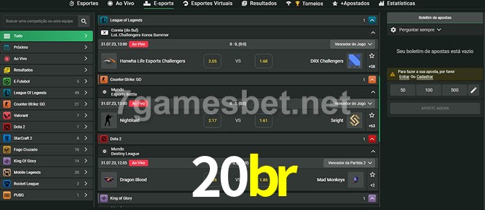 O 20br oferece uma grande seleção de opções de apostas em e-sports com probabilidades competitivas